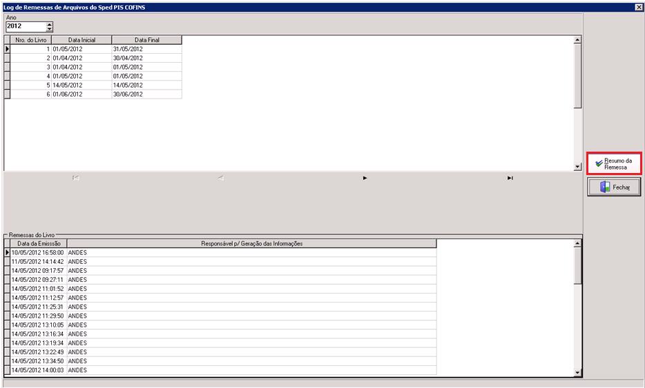 Remessa do Livro: Data e hora do envio de remessa do arquivo.